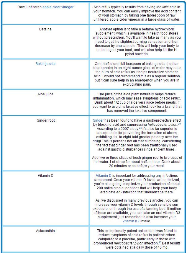 Another option is to take a betaine hydrochloric supplement, which is available in health food stores without prescription. You’ll want to take as many as you need to get the slightest burning sensation and then decrease by one capsule. This will help your body to better digest your food, and will also help kill the helicobacter and normalize your symptoms. Now, while hiatal hernia and H.pylori infection are unrelated, many who have a hiatal hernia also have H. pylori18 and associated symptoms. If you have a hiatal hernia, physical therapy on the area may work, and many chiropractors are skilled in this adjustment.