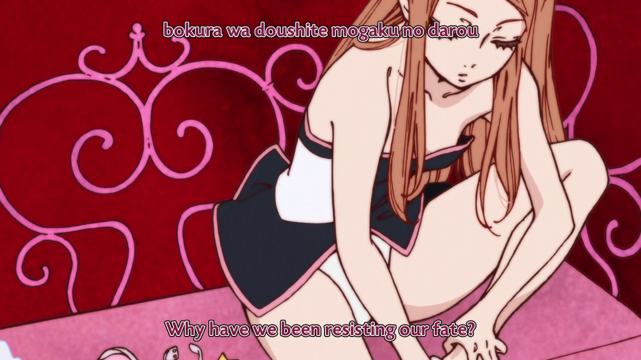This is a still from the opening theme. Next are some stills from episode 3. The character here is named Ringo, just like me. Ringo is also the Japanese word for “apple” aka the Forbidden Fruit.